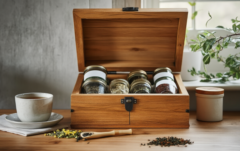 Der richtige teekasten kombiniert lebensmittelechte Materialien, luftdichte Verschlüsse und flexible Fächer.